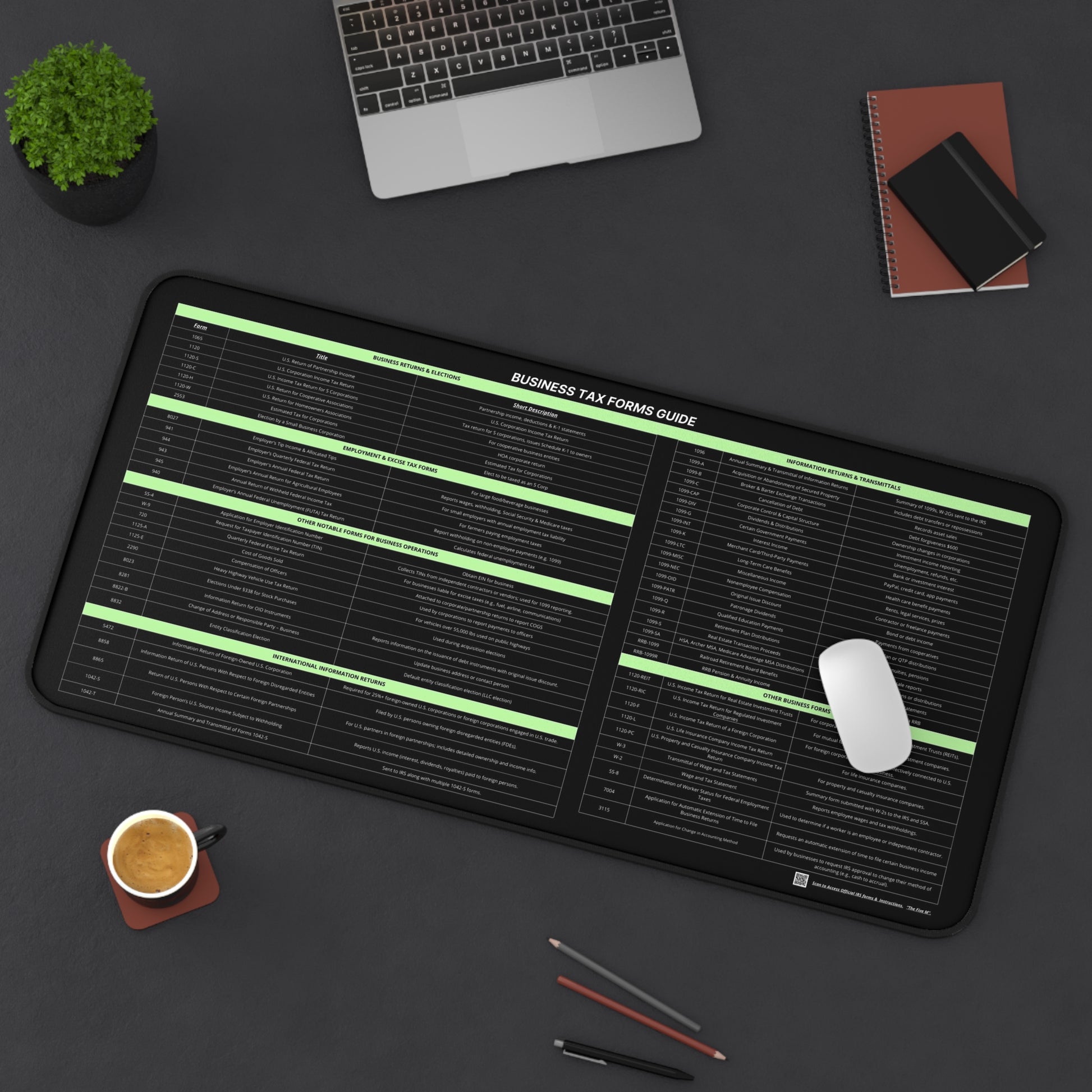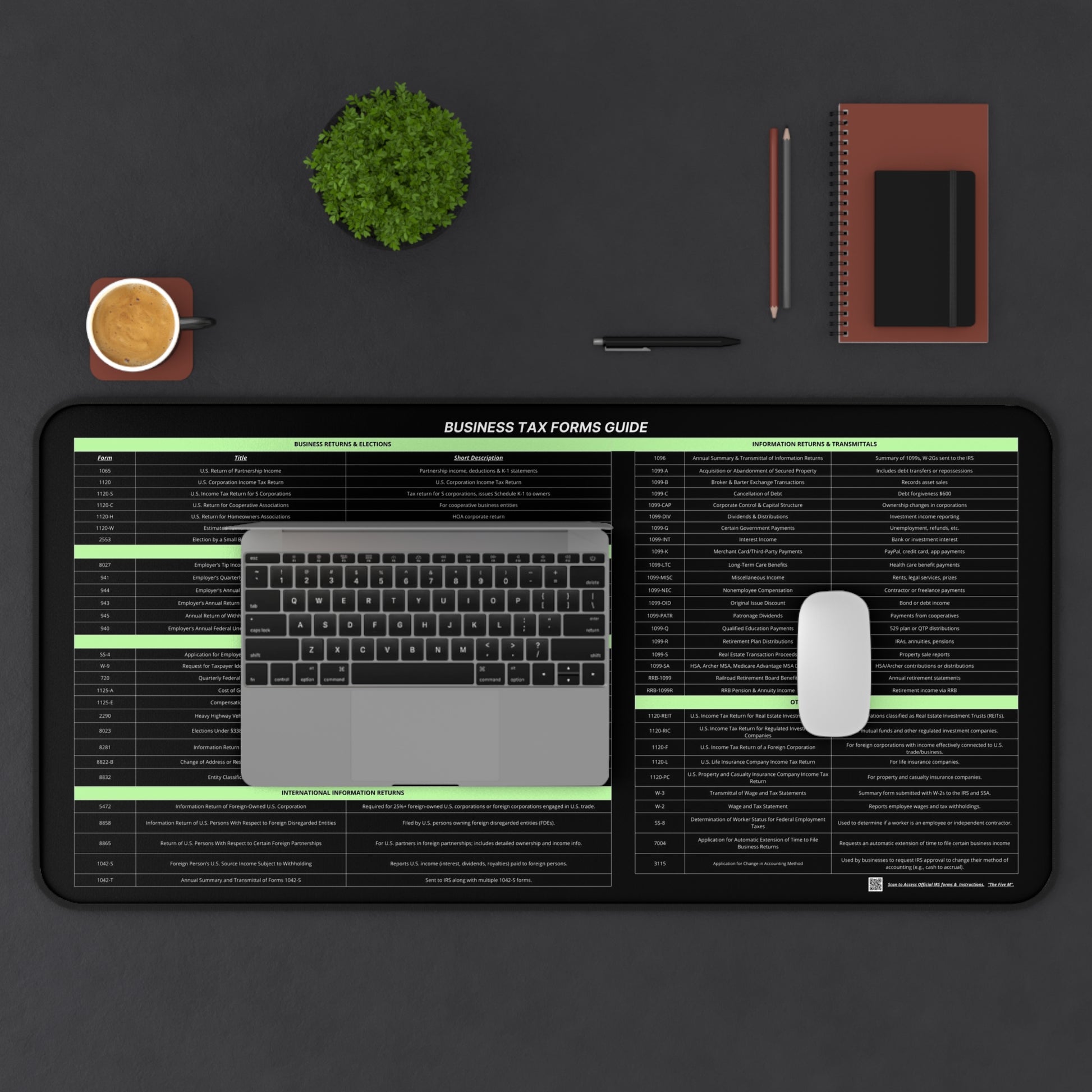 Upgrade your desk with the Business Tax Forms Guide Desk Mat — a stylish, quick-reference tool designed to keep your most essential U.S. Business tax forms at your fingertips.