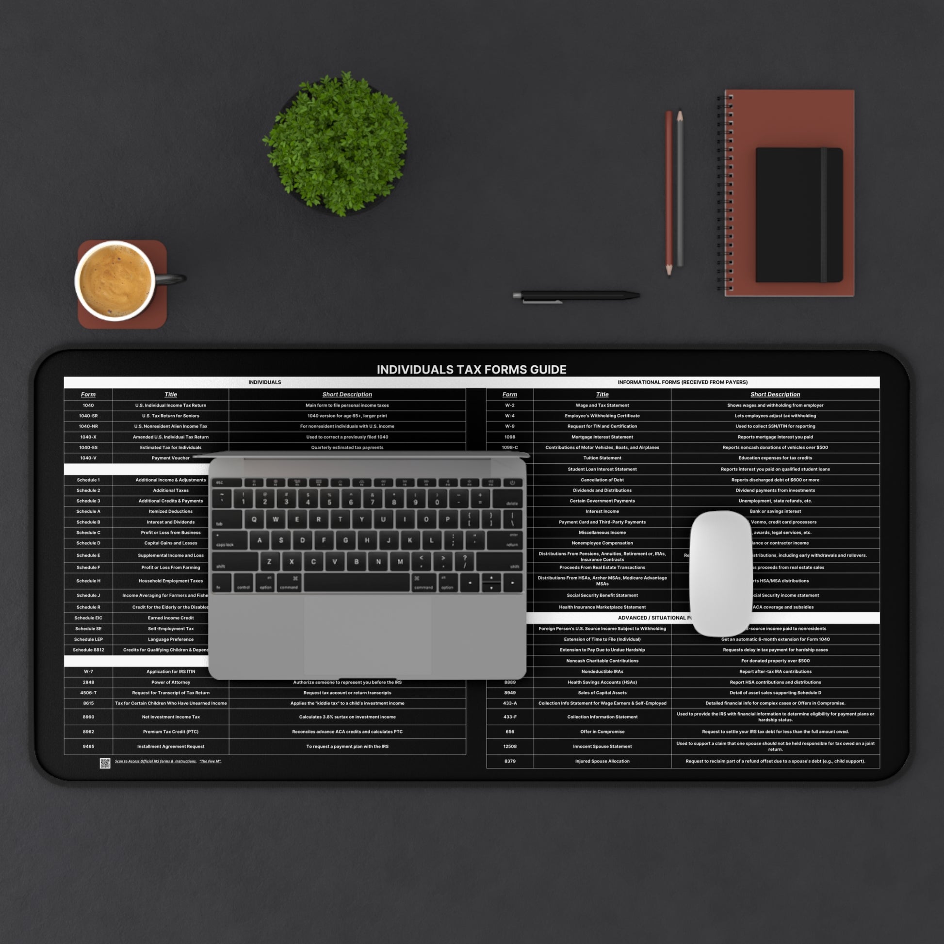 Upgrade your desk with the Individual Tax Forms Guide Desk Mat — a stylish, quick-reference tool designed to keep your most essential U.S. Individual tax forms at your fingertips.